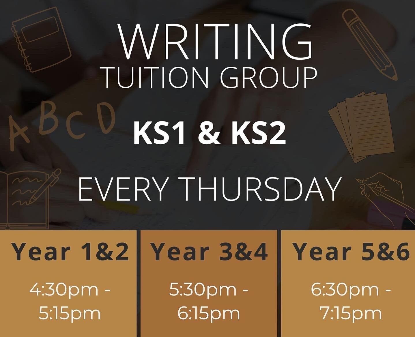 Maths and Writing Tuition Groups are held at our private tuition room weekly. Groups are kept small, at a minimum of 4, so that a tailored approach can still be given to each student. (Please see details below for timings.)
